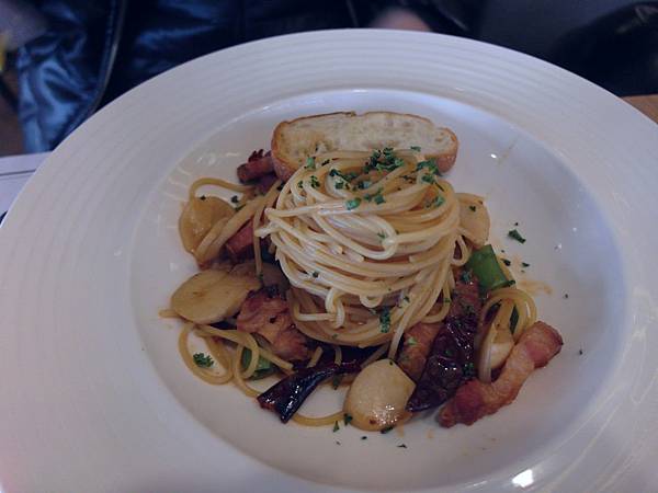 不像青白紅醬的義大利麵浸泡在醬汁裡~這個麵的味道相對淡!